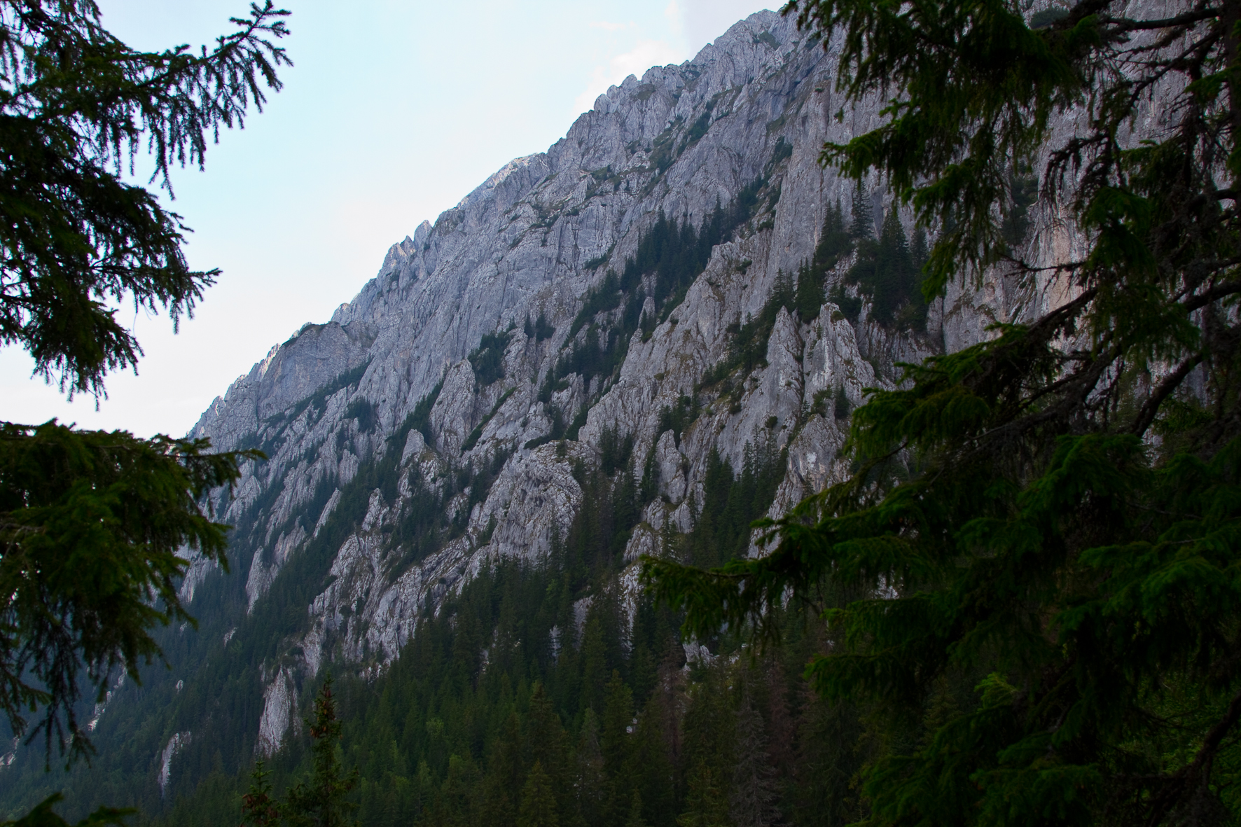 După Şpirlea începe de fapt urcuşul şi de apropiem de baza peretelui Pietrei Craiului. La ieşirea dintre brazi ne întâmpină abrupturile de calcar.
