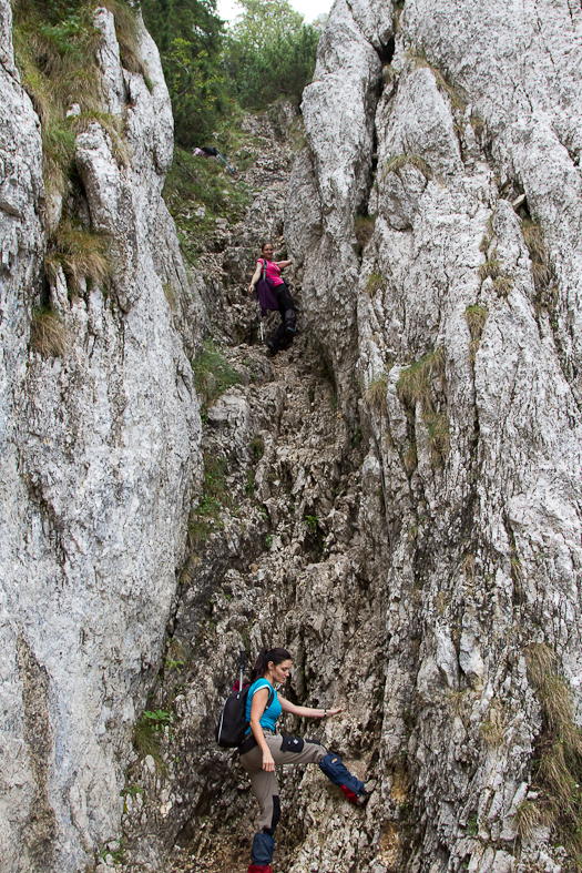 Începe urcuşul şi întâlnim în scurtă vreme nişte formaţiuni calcaroase interesante.