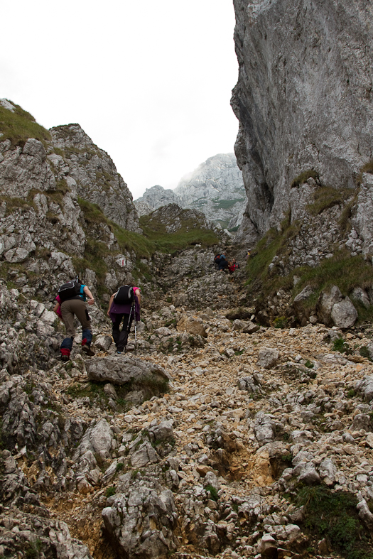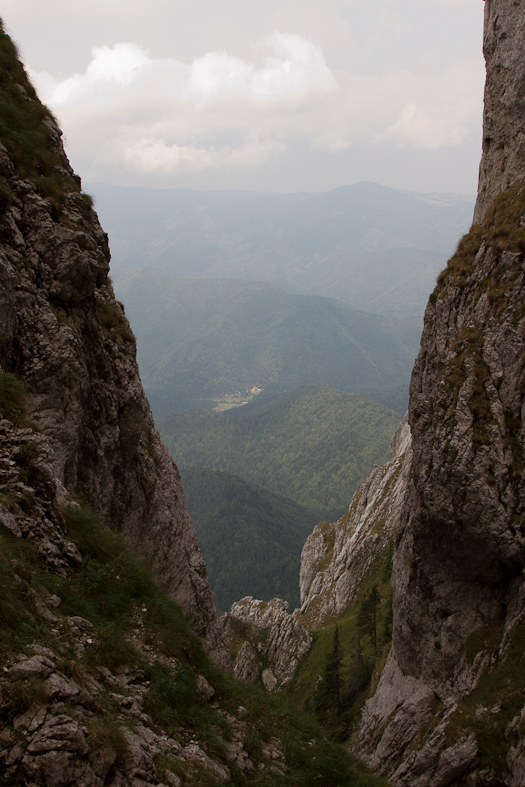 Într-o pauză de urcare privim în josul văii abrupte şi ne dăm seama că am câştigat ceva altitudine. Oare cât mai avem ? Am făcut deja jumate sau doar un sfert?