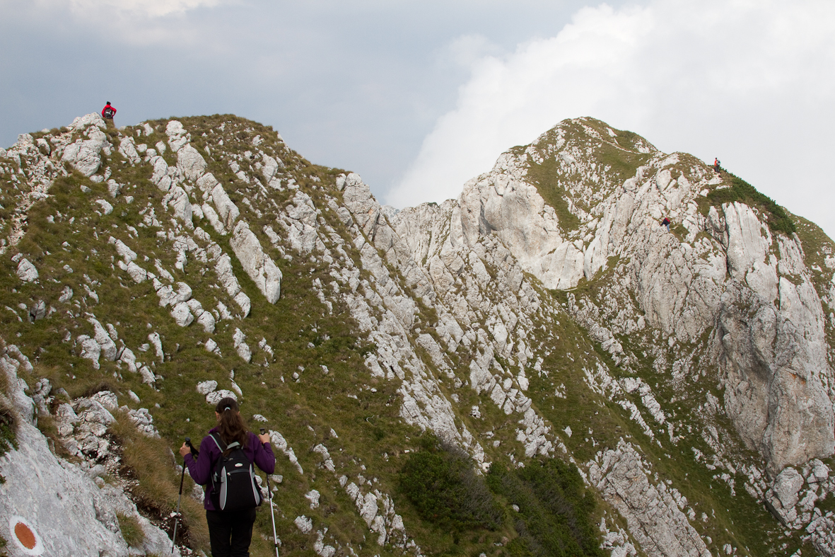 Pornim la drum spre partea nordică a crestei. Următoarea etapă are vreo 3 ore de mers pe creastă până la vârful Ascuţit, de unde vom părăsi creasta.