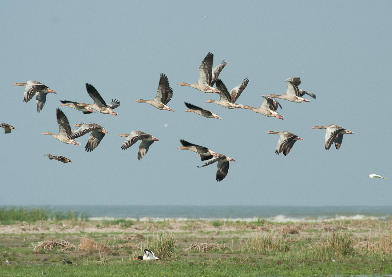 Pelicanii sunt desigur vedetele; dar în lipsa lor există o mulţime de alte păsări de observat pentru iubitorul de sălbăticiuni. De exemplul gâşte sălbatice.