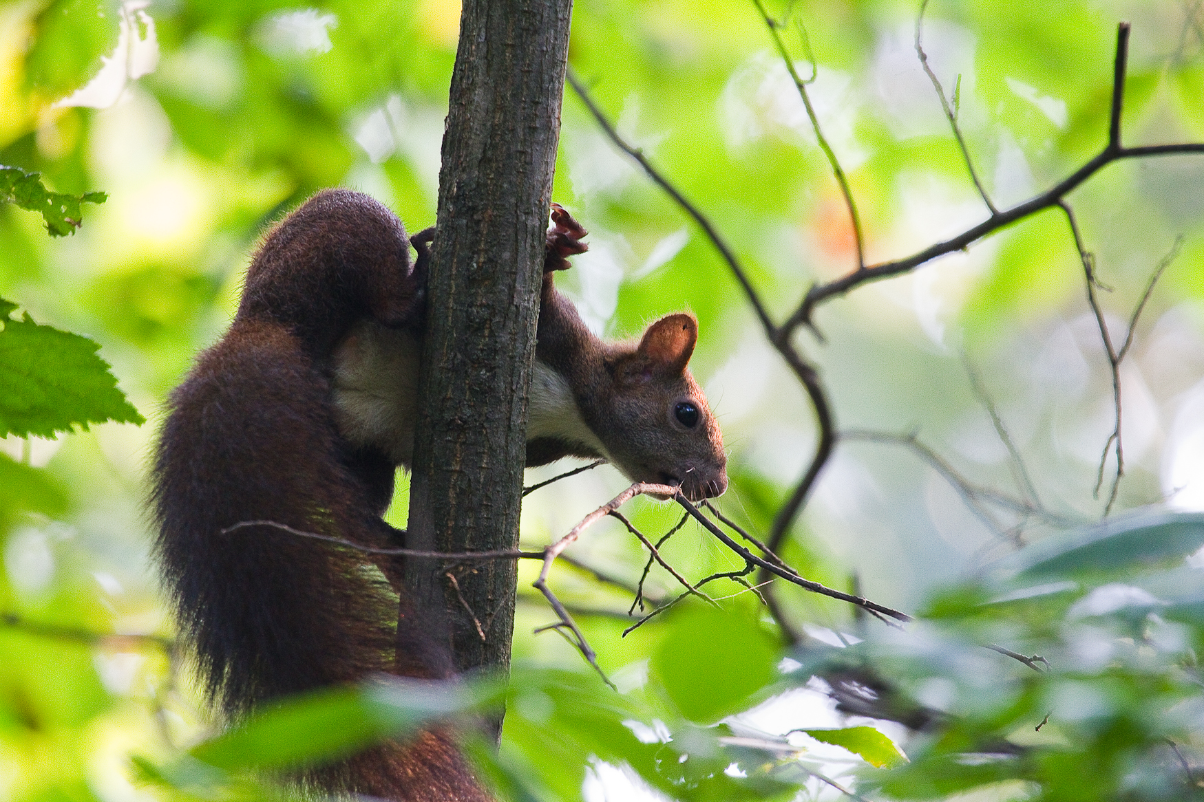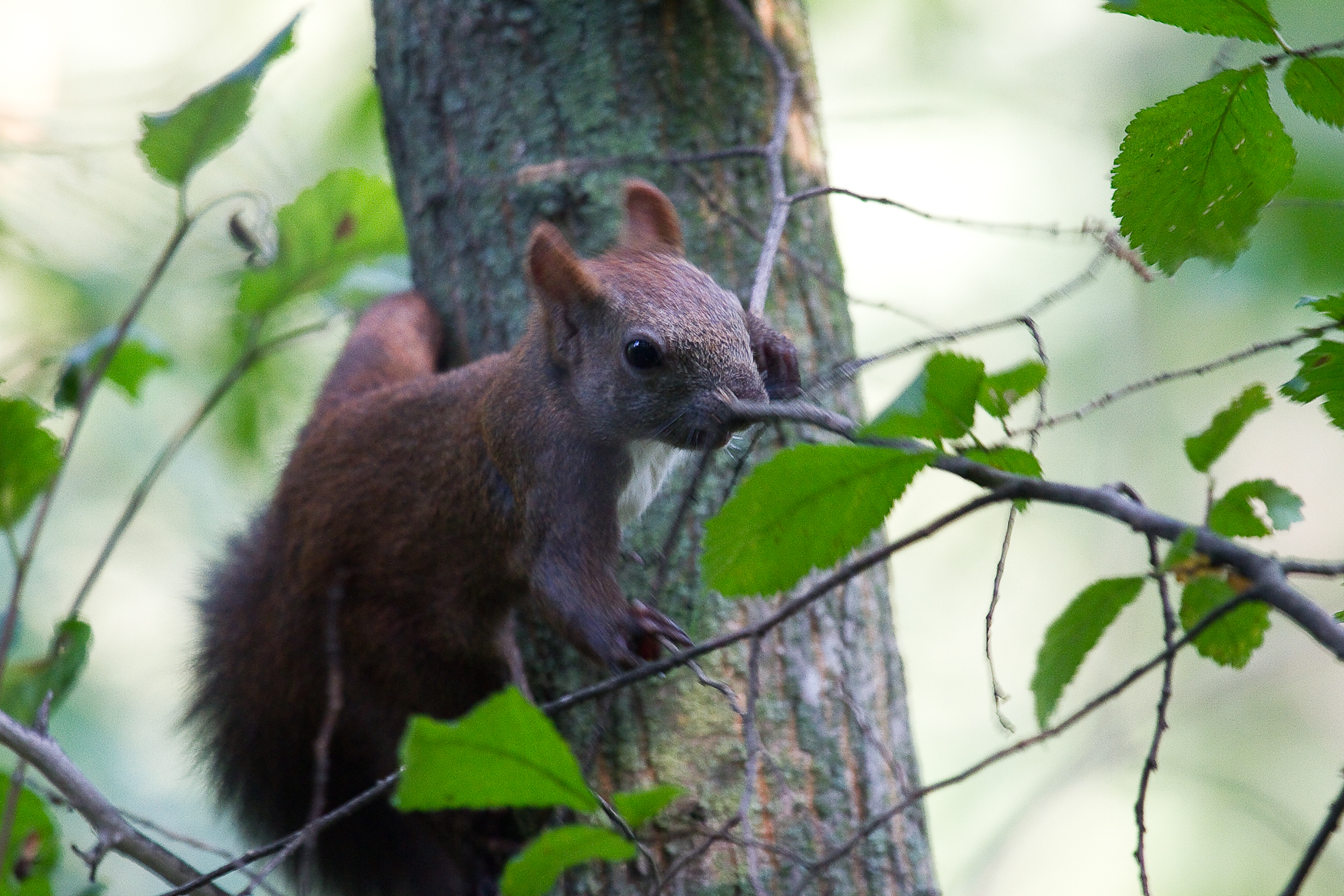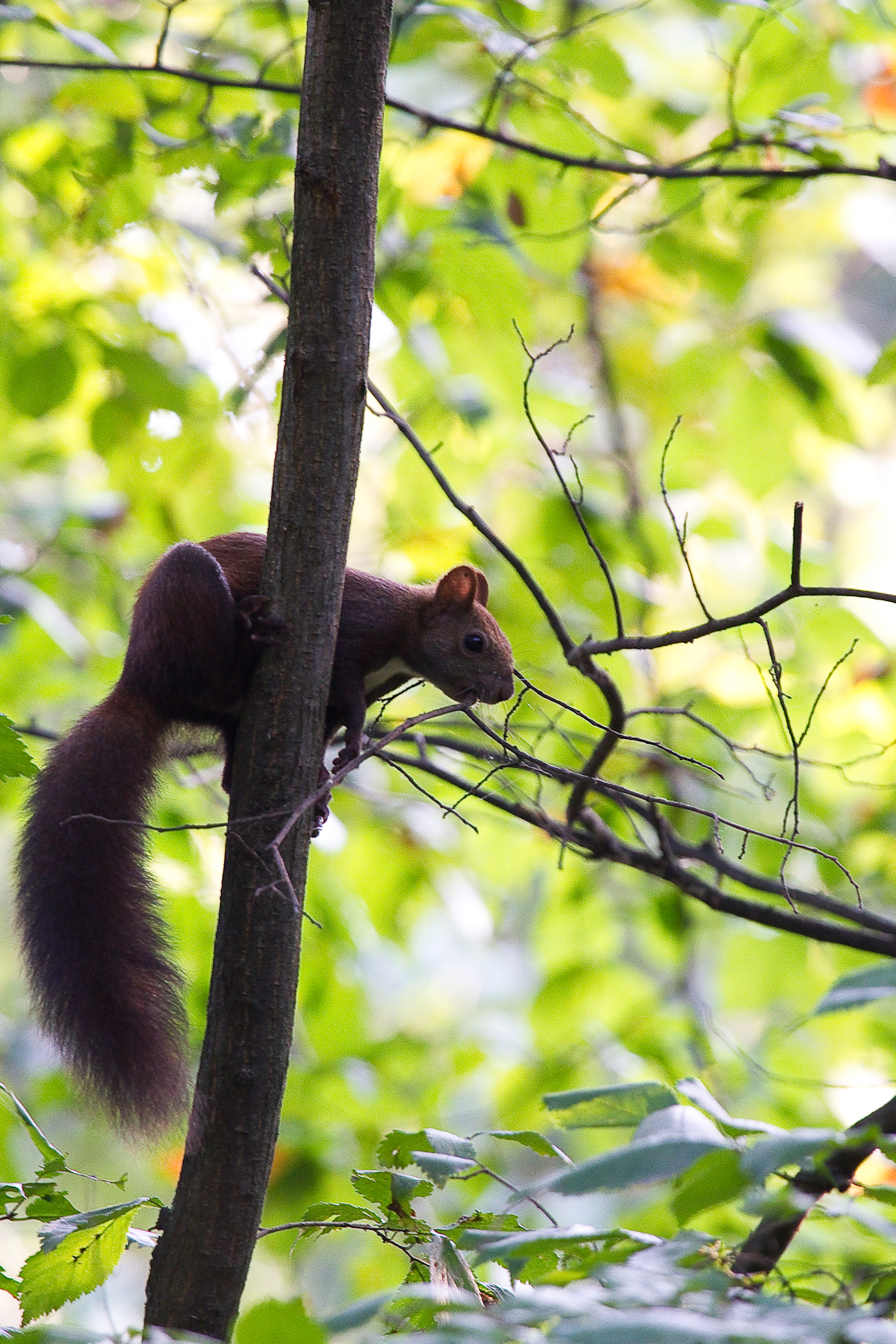 Reuşesc să mă apropii la o distanţă confortabilă. Veveriţa ori nu mă observă sau mai degrabă îmi tolerează prezenţa şi îşi vede de treabă în continuare.
