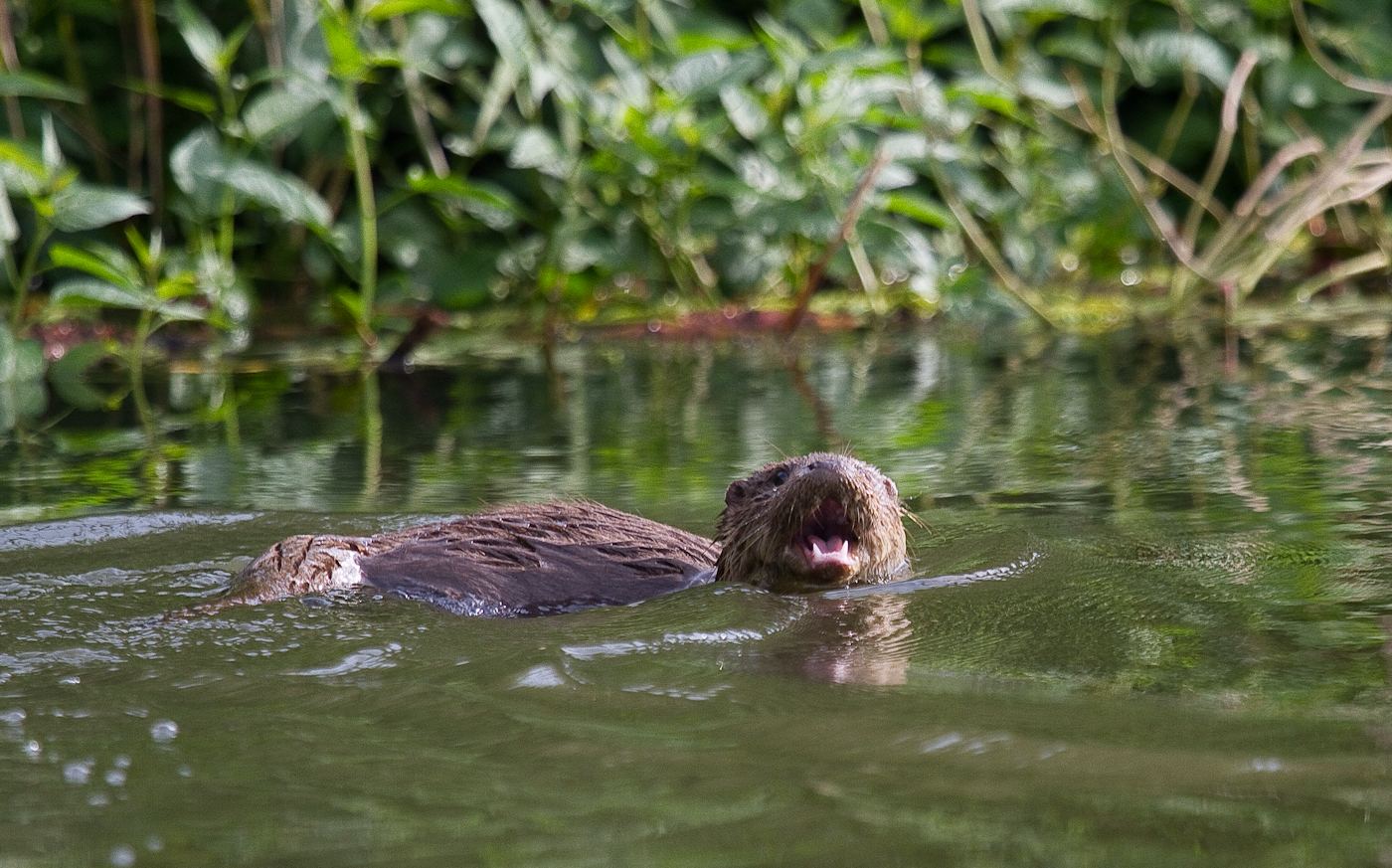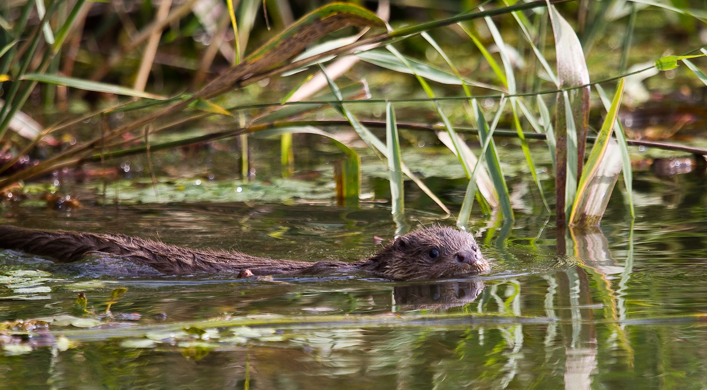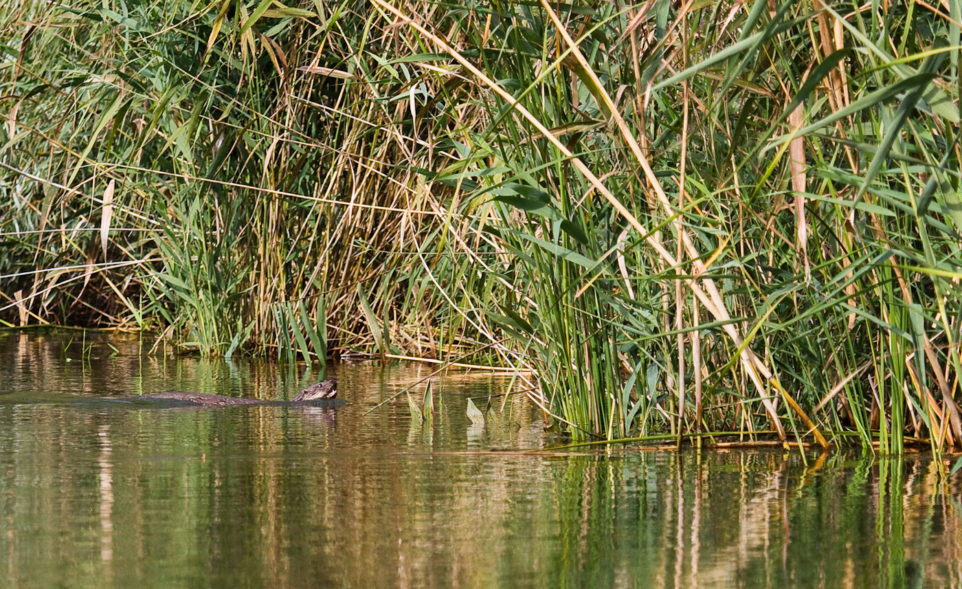 La un moment dat în vegetatia de lângă noi încep să se audă zgomote care trădează o forfotă activă a mai multor animale. E o familie de vidre (Lutra Lutra). Încep să fie gălăgioase, scoţând un fel de piuit puternic care răsună pe tot canalul. O vidră mai curajoasă se aventurează până în apropierea bărcii noastre.